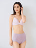 お尻まわりの生地を3重にしてヒップアップをサポートするショーツです。3重構造の生地がタレてくるお尻を抑えて、キュッとお尻をあげてくれます。肌にあたる部分は綿混で肌にやさしい構造になっています。