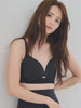 「締め付けは嫌だけど、シルエットは諦めたくない」。そんな声に応えるため、ワイヤーを使わずに美しいバストラインを作る方法を模索しました。立体的なパターン設計と、やさしく支えるソフトパッド。この組み合わせが、自然な丸みを保ちながらストレスフリーな着け心地を叶えます。在宅ワークでもお出かけでも、一日中快適に過ごせる一枚です。